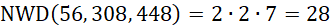 Wspólne elementy rozkładu liczb 56, 308 i 448: 2, 2, 7.