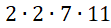 Rozkład liczby 308 na czynniki pierwsze to: