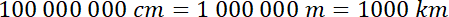 Aby obliczyć szukaną ilość kilometrów, usuń 5 zer z liczby centymetrów.