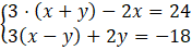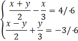Pomnożymy oby dwa równania obustronnie przez 6, aby uprościć obliczenia: