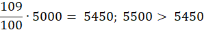 Oceń, która z podanych wartości jest większa: 5500€ czy 109% kwoty 5000 €.