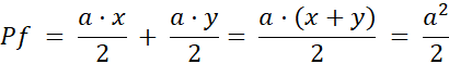 Zauważ, że zamalowana figura to suma pól dwóch trójkątów o wysokościach równych długości boku kwadratu i podstawach, których długości po zsumowaniu dają długość boku kwadratu.