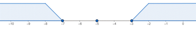 W tym zadaniu musisz zaznaczyć na osi liczbowej i zapisać za pomocą przedziału zbiór wszystkich liczb rzeczywistych, których odległość na osi liczbowej od liczby - 5 jest większa od 2.