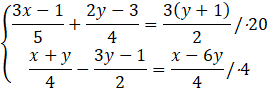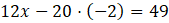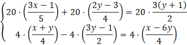 Mnożymy obie strony pierwszego równania przez 20 i drugie równanie (obie strony) przez 4, aby uprościć obliczenia: