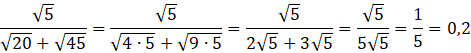 To zadanie musisz zacząć od uproszczenia mianownika. Wyłącz czynniki przed pierwiastki i zsumuj pierwiastki z sobą. Następnie skróć pierwiastek z licznika z pierwiastkiem z mianownika.