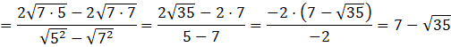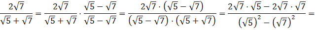 Musisz przekształcić ułamki w taki sposób, aby w mianowniku nie było pierwiastka, korzystając ze wzorów skróconego mnożenia oraz praw działań na pierwiastkach.