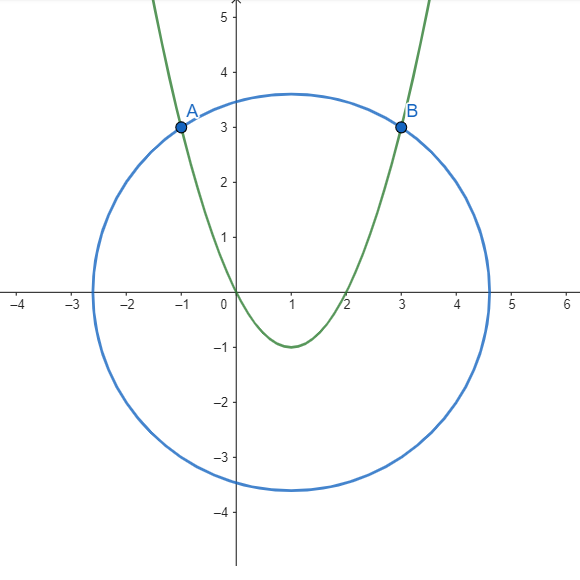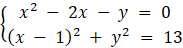 Rozwiązanie układu równań powinieneś zacząć od odjęcia równań stronami tak, aby zredukować kwadraty niewiadomych.