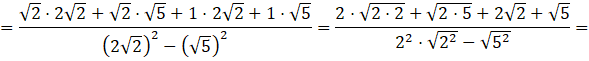 Musisz przekształcić ułamki w taki sposób, aby w mianowniku nie było pierwiastka, korzystając ze wzorów skróconego mnożenia oraz praw działań na pierwiastkach.