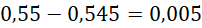 Najmniejsza liczba, która po zaokrągleniu do części dziesiątych jest równa 0,6, to 0,55. Znajdź różnicę tej liczby i 0,545.