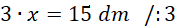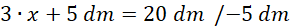Najkrótszy bok oznacz za pomocą x. Wtedy średni bok będzie równy x + 2 dm, a najdłuższy x + 3 dm. Dodaj do siebie długości tych boków i przyrównaj je do długości obwodu. Oblicz x, a następnie długości pozostałych boków.
