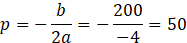 Oznacza to, że największe pole prostokąta będzie dla