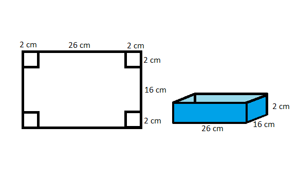 W tym zadaniu musisz obliczyć pojemność pudełka, którego siatka powstała z wycięcia kwadratów w rogach kartonowego arkusza.