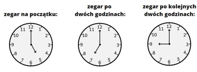 Jeśli masz kłopot z wyobrażeniem sobie tej sytuacji, weź do ręki model zegara i ustaw wskazówki tak, jak opisano w poleceniu.