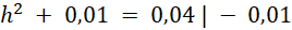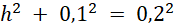 Długość taśmy ołowianej, którą się wykorzystuje do zrobienia jednego witraża to suma długości 12 boków małego rombu, więc 1,2 m : 12 = 0,1 m – długość boku małego rombu. Długość boku dużego rombu – okna – jest dwa razy większa, czyli wynosi 0,2 m. krótsza przekątna witrażu dzieli go na dwa trójkąty równoboczne. Wysokość tego witrażu to wysokość tego trójkąta, obliczmy ją z twierdzenie Pitagorasa: