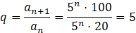 Iloraz ciągu jest równy 5, to znaczy, że jest stały i ciąg ten jest geometryczny.