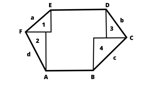 Na początek zrób rysunek pomocniczy. Dzielisz sześciokąt na mniejsze figury. Powstają cztery trójkąty (takie same) oraz figura w środku. Pole figury to suma pól figur. Oblicz pole trójkąta oraz figury w środku, zsumuj i otrzymasz pole całkowite.