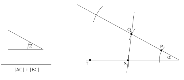 Wbij cyrkiel w wierzchołek kąta i odmierz na jednym z jego ramion ustaloną długość – wyznaczony punkt oznacz przez S.