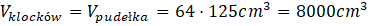 Oblicz objętość klocka, która jest sześcianem długości jego krawędzi. Następnie oblicz objętość wszystkich klocków i to będzie również wartość objętości pudełka.