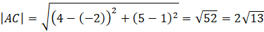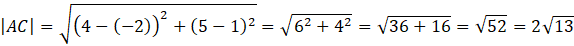 Oblicz długość przekątnej kwadratu ABCD, w którym 𝐴=(−2, 1), 𝐶=(4, 5).