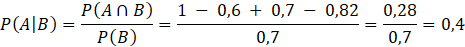 i P(A’) = 0,6, P(B)= 0,7 i P(