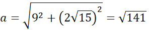 Odcinek a jest promieniem okręgu i jego długość jest taka sama jak długość każdego odcinka łączącego środek okręgu z dowolnym jego punktem. Stąd długość odcinka a oblicz jako przeciwprostokątna trójkąta prostokątnego o przyprostokątnych długości 9 i