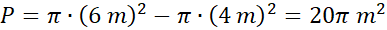 . Promień koła mniejszego wynosi 4 m, a promień koła większego jest o 2 m większy i wynosi 6 m.