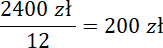 Malowanie pewnego mieszkania wyceniono na 2400 zł. Pracę wykonano w 12 dni. Oblicz jaką kwotę płacono za jeden dzień pracy: