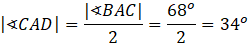 Dwusieczna dzieli kąt na pół. Na tej podstawie oblicz miarę kąta CAD.