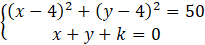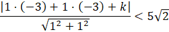 Zauważ, że układ równań zawierający okrąg i prostą ma dwa rozwiązania, gdy prosta jest sieczną, czyli ma z okręgiem dwa punkty wspólne. Prosta jest sieczną, więc jej odległość od środka okręgu jest mniejsza od jego promienia.