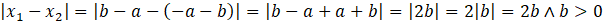 Ponieważ b jest dodatnie to musisz rozważyć dwa przypadki: kiedy wyrażenie pod wartością bezwzględną wynosi b oraz kiedy wyrażenie w module wynosi -b.