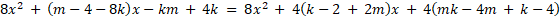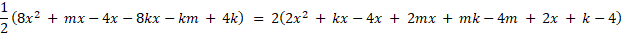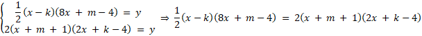 Zauważmy, że skoro wyrażenia przyjmują te same wartości, to możemy do siebie je przyrównać, przez co otrzymujemy równanie. Następnie przyrównujemy do siebie współczynniki stojące przy zmiennej x i tworzymy układ równań z dwiema niewiadomymi (k, m), który rozwiązujemy.