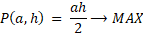 Zadanie optymalizacyjne rozwiązujemy wpierw podając założenia dotyczące liczb a i h oraz uzależniając jedną zmienną od drugiej. Następnie tworzymy funkcję celu – pole dąży do maksimum. Określamy współczynnik a oraz p i porównujemy z założeniami.