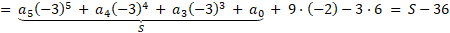 Obliczamy wartość dla argumentu – 3 w przypadku każdego wielomianu, podstawiając argument w miejsce zmiennej x. Następnie określamy, dla którego z nich wartość jest większa i obliczamy różnicę między nimi.