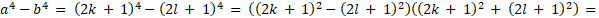 Udowodnij że dla dwóch liczb parzystych lub dwóch nieparzystych zachodzi taka własność, że różnica czwartej potęgi większej i czwartej potęgi mniejszej z nich jest podzielna przez średnią arytmetyczną tych liczb.