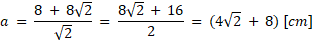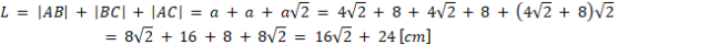 . Oblicz długość boku a ze wzoru na przekątną kwadratu. Na koniec oblicz pole i obwód trójkąta ABC.