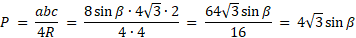 Zacznij od obliczenia długości boków b i c z twierdzenia sinusów. Oblicz pole trójkąta ze wzoru
