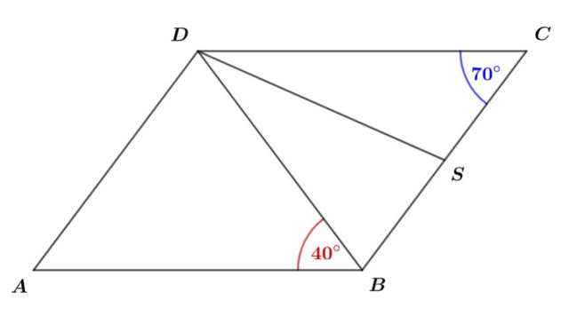 Stwórz rysunek pomocniczy. Przeciwległe kąty równoległoboku mają takie same miary, więc kąt
