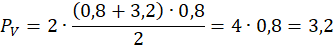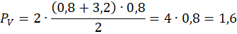 Literę V możemy podzielić na dwa takie same trapezy o wysokości równej szerokości wstążki – 0,8 i podstawach długości 0,8 i 3,2: