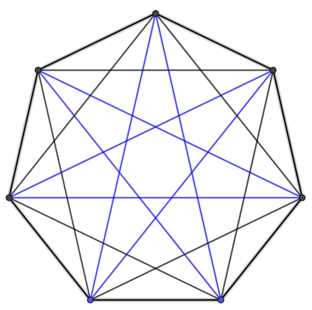 PRAWDA. Siedmiokąt foremny ma 7 krótszych przekątnych.