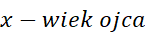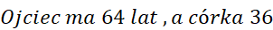 Przyjmi oznaczenia jak powyżej. Wyznacz zależność x od y. Następnie oblicz dwie możliwe wartości x i dwie możliwe wartości y. Stwierdź, że ojciec ma 64 lata, a córka ma 36 lat.