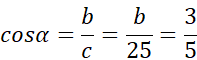 Oblicz długość boku z funkcji trygonometrycznej cos α. Długość kolejnych boków oblicz z twierdzenia Pitagorasa i pola danego trójkąta.