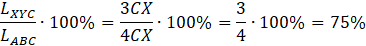 Na bokach AC i BC trójkąta równobocznego ABC wybrano punkty X i Y, gdzie CX = CY. Suma długości odcinków XA, AB i BY stanowi połowę obwodu trójkąta ABC. Uzasadnij, że obwód trójkąta XYC stanowi 75% obwodu trójkąta ABC.