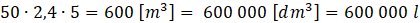Zacznij od obliczenia, ile metrów pokona woda w czasie 1 minuty. Kolejno oblicz objętość prostopadłościanu o wymiarach 50m x 2,4 m x 5 m.