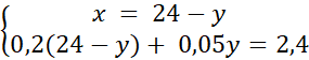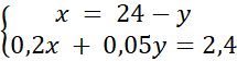 4,8 – 0,2y + 0,05y = 2,4 / - 4,8