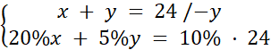 x = 24 – y = 24 – 16 = 8