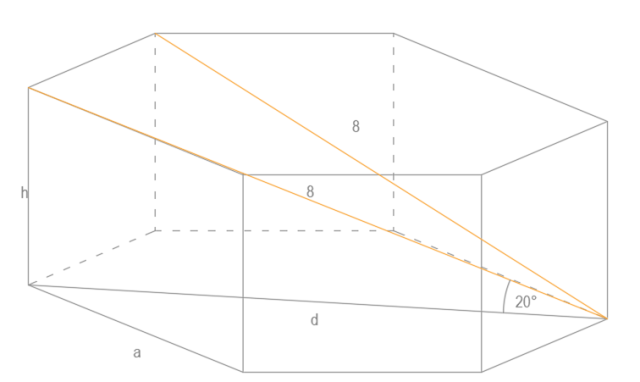 Znajdź wysokość i długość boku podstawy w graniastosłupie prawidłowym na rysunku.