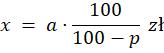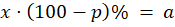 Ile kosztował produkt przed obniżką o p%, którego cena teraz to a zł?