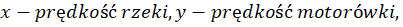 W tym zadaniu musisz obliczyć prędkość wody w rzece, jeżeli motorówka z prądem rzeki przepłynęła trasę 3 km w ciągu 5 min z prądem rzeki, z kolei płynąc pod prąd motorówka przepłynęła tą trasę w 6 min.