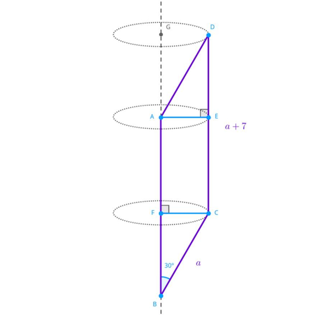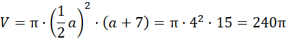 Zauważ, że objętość bryły powstałej z obrotu równoległoboku to to samo, co objętość walca FCDG. Oblicz jego objętość: