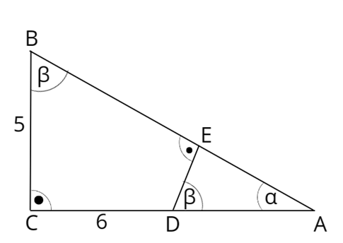 Zauważ, że trójkąty ABC i ADE są podobne na podstawie cechy kąt – kąt – kąt. Oblicz długość odcinka AB z twierdzenia Pitagorasa. Ułóż stosunek podobieństwa na podstawie trójkątów ABC i ADE.